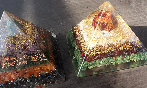 Bei den drei Hauptbestandteilen aller Orgoniten handelt es sich um Harz, Edelsteine und Metalle zu annähernd gleichen Anteilen. Durch Schichtungen von anorganischen, wie organischen Materialien, also Metallen und Halbedelsteinen sowie Edelsteinen entsteht Orgon und kann vor negativen Belastungen (Elektosmog, WLAN, Handystrahlung und Unstimmigkeiten) schützen. Allein das Betrachten der Pyramiden und Kegel bewirkt eine angenehme Stimmung. Dadurch, kombiniert mit der wissenschatlich nachgewiesenen Positivierung der Umgebung durch Orgon, entsteht ein harmonisches Umfeld.